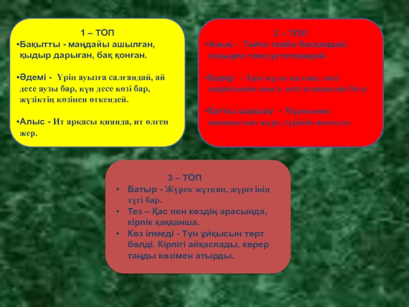 Тұрақты тіркестерге арналған сызбалар, тақырыпты ашуға арнап салынған суреттер.