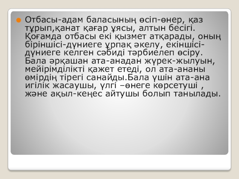 Презентация, доклад на тему Тәрбие - отбасынан басталады Презентация Тәрбие сағаты
