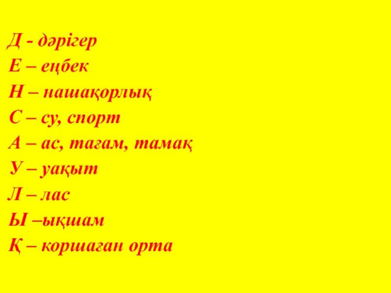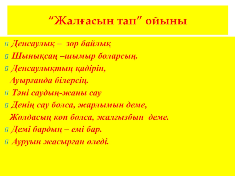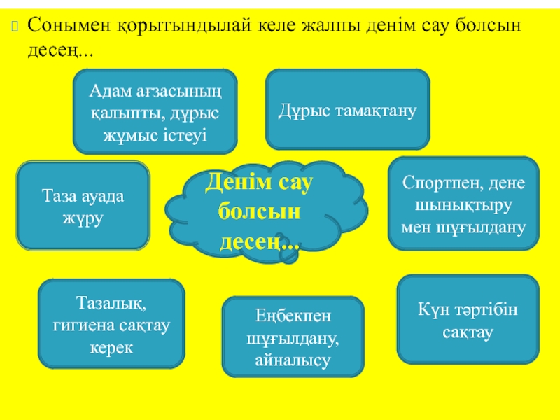 Слайд 16Сонымен қорытындылай келе жалпы денім сау болсын десең...