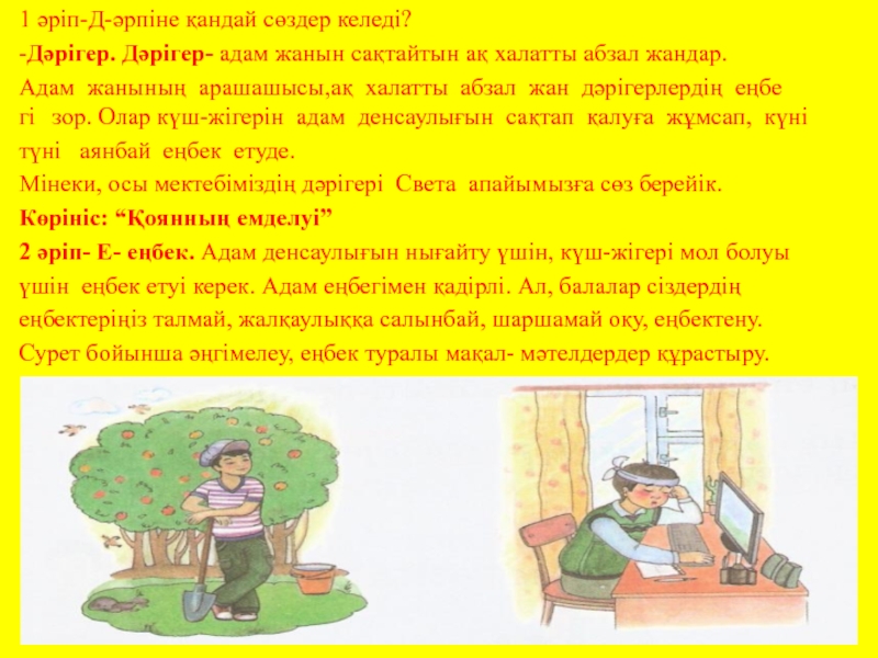 2 әріп- Е- еңбек. Адам денсаулығын нығайту үшін, күш-жігері мол болуы