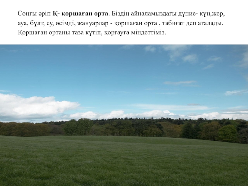 Қоршаған ортаны таза күтіп, қорғауға міндеттіміз.