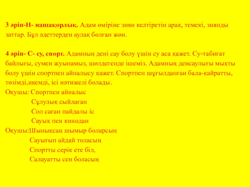 3 әріп-Н- нашақорлық. Адам өміріне зиян келтіретін арақ, темекі, зиянды