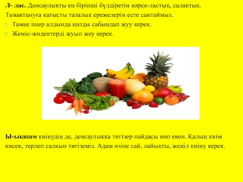 Слайд 14Л- лас. Денсаулықты ең бірінші бүлдіретін нәрсе-ластық, салақтық.