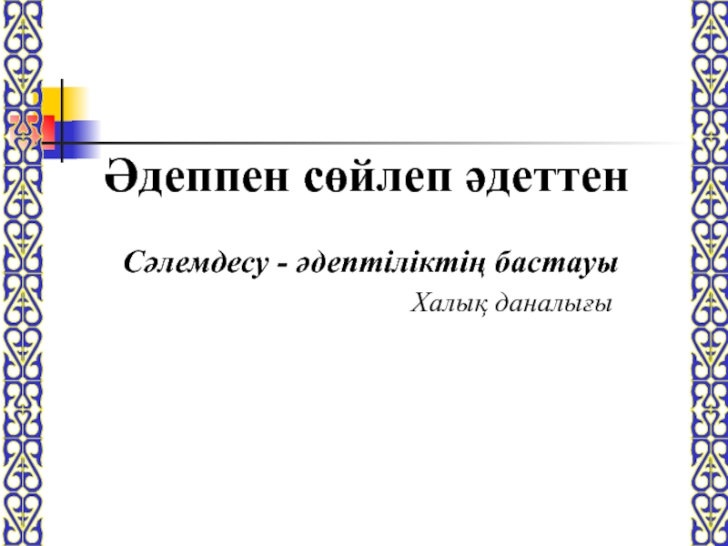 Сәлемдесу - әдептіліктің бастауы