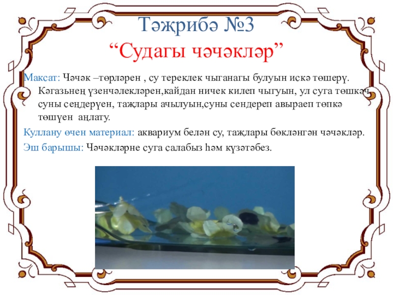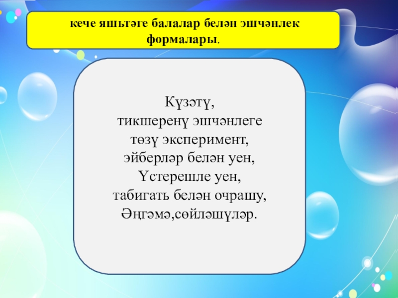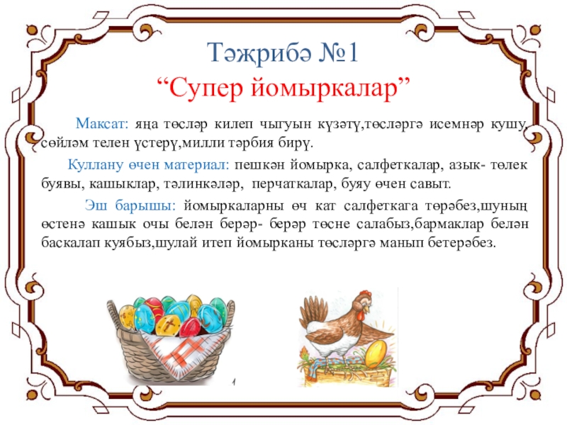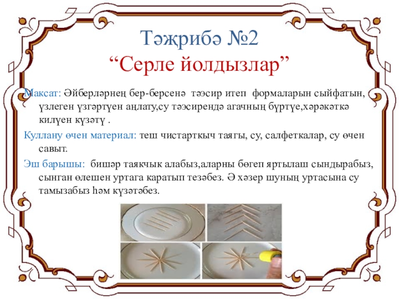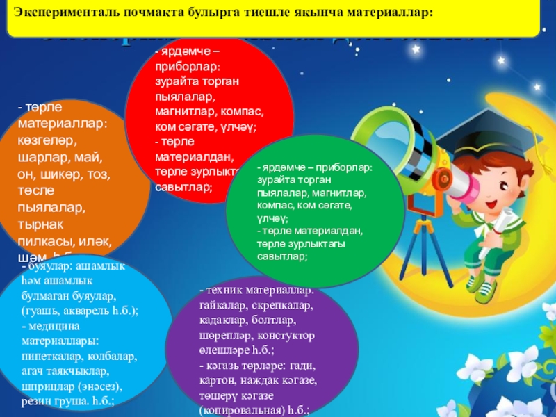 Эксперименталь почмакта булырга тиешле якынча материаллар:
