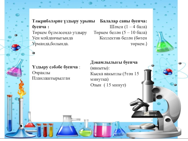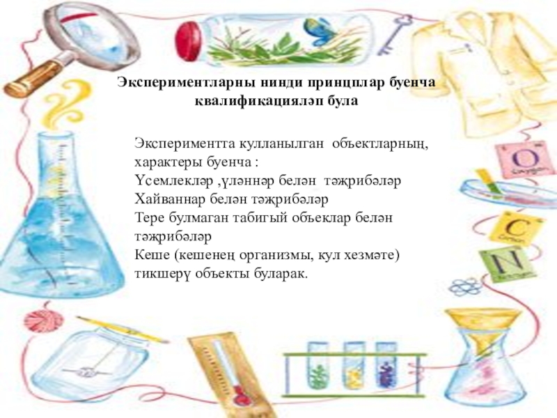- ярдәмче – приборлар: зурайта торган пыялалар, магнитлар, компас, ком сәгате, үлчәү;
