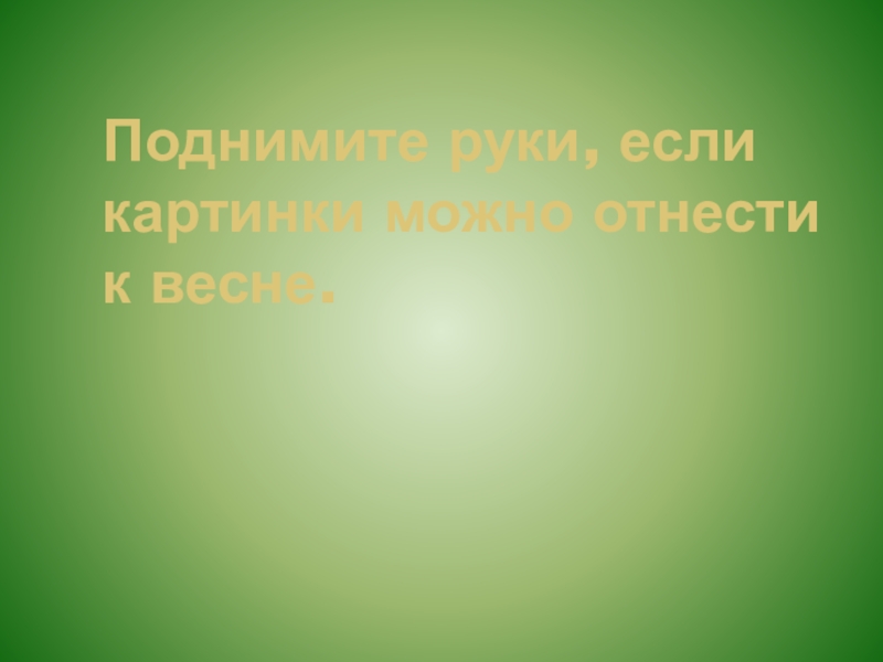 Слайд 33Поднимите руки, если картинки можно отнести к весне.