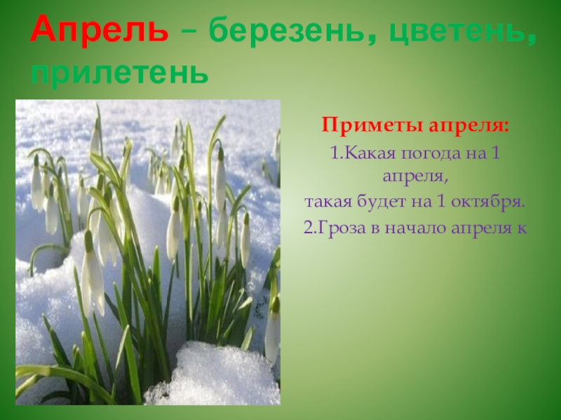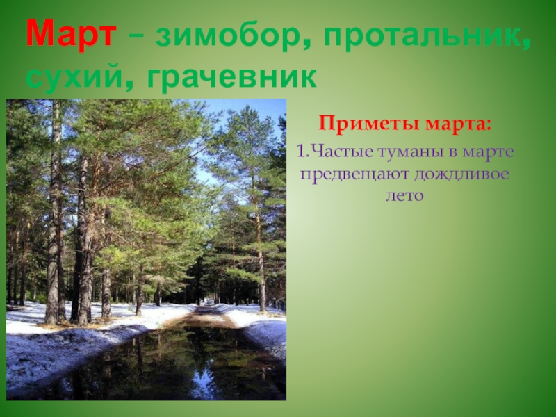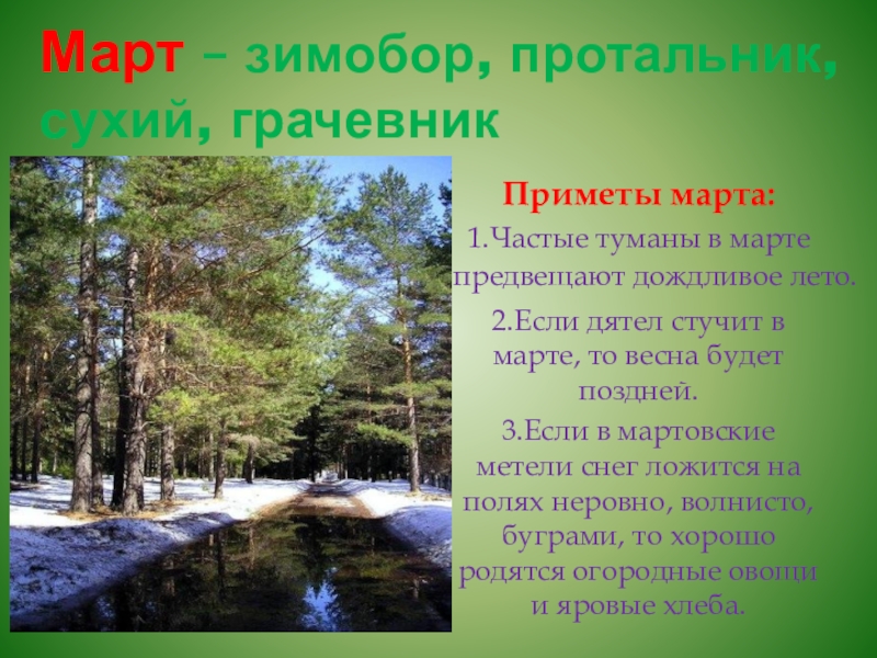 Слайд 8Март – зимобор, протальник, сухий, грачевник