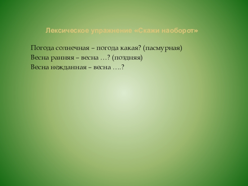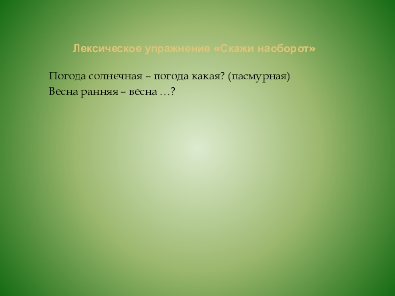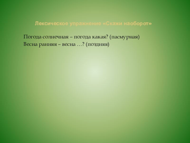 Слайд 46Лексическое упражнение «Скажи наоборот»
