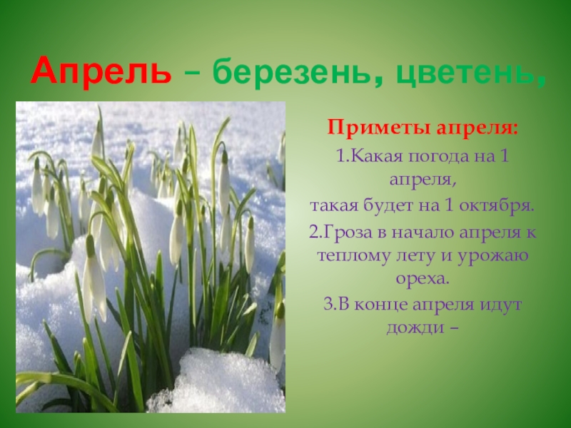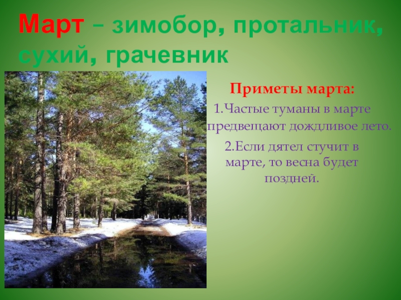 Слайд 10Март – зимобор, протальник, сухий, грачевник