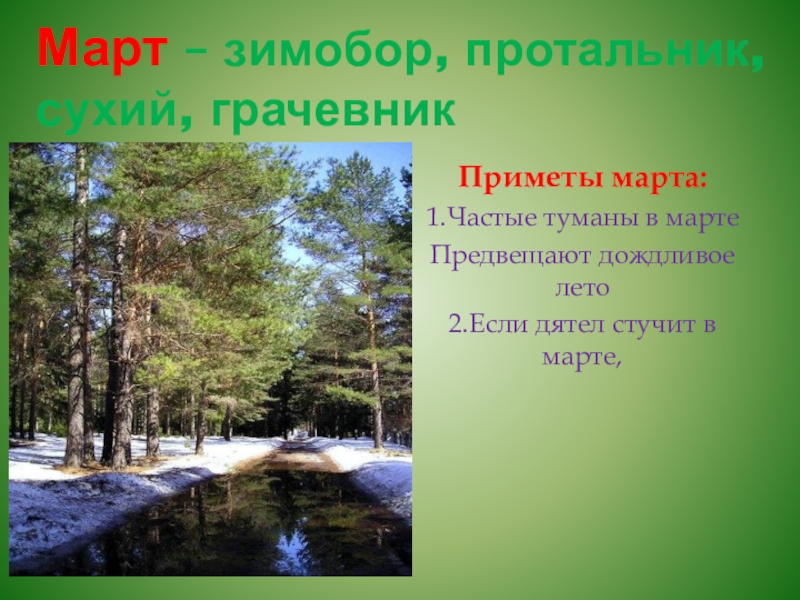 Слайд 7Март – зимобор, протальник, сухий, грачевник