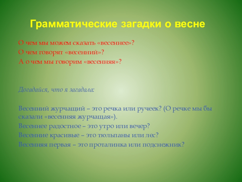 Весенний журчащий – это речка или ручеек? (О речке мы бы сказали «весенняя журчащая»).