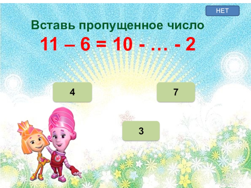 НЕТВставь пропущенное число 11 – 6 = 10 - … - 2374