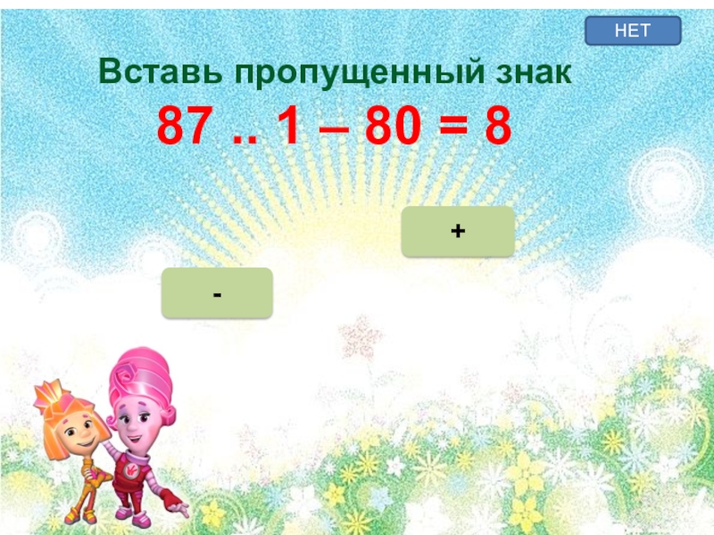 НЕТ+-Вставь пропущенный знак87 .. 1 – 80 = 8