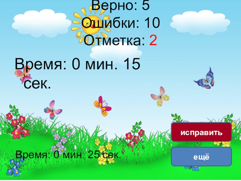 По-умолчанию включена возможность повторения сделанных ошибок. Если во 2-м слайде удалить кнопку «исправить», то исправление задания предлагаться не будет.