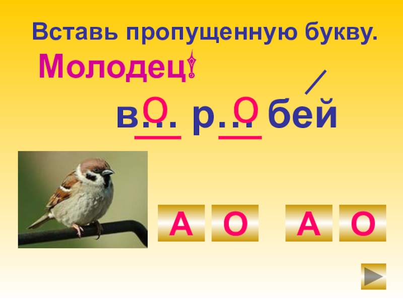 в… р… бейОАОАооМолодец!Вставь пропущенную букву.