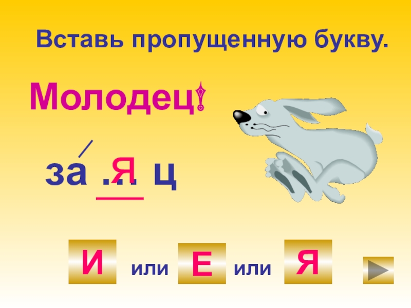 Вставь пропущенную букву.за … цИилиЕЯилиМолодец!я