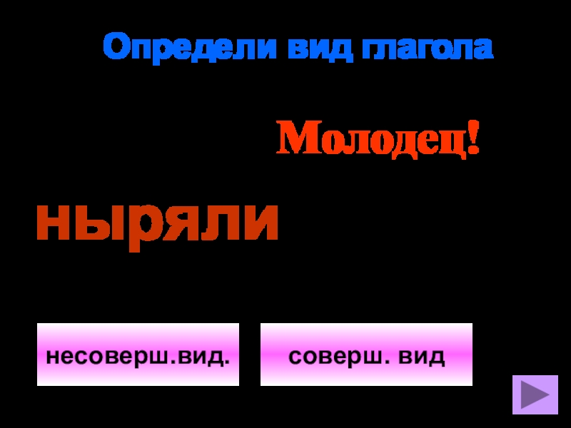Определи вид глаголасоверш. виднесоверш.вид.Молодец!ныряли
