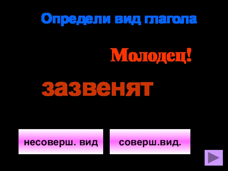 Определи вид глаголанесоверш. видсоверш.вид.Молодец!зазвенят