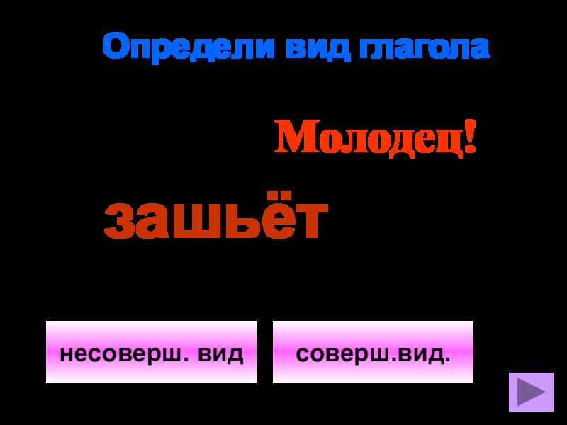 Определи вид глаголанесоверш. видсоверш.вид.Молодец!зашьёт