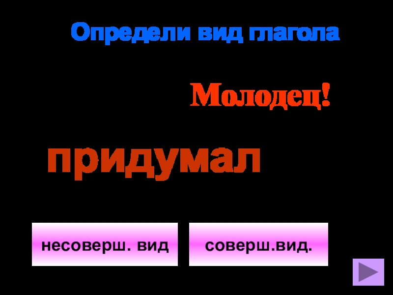 Определи вид глаголасоверш. виднесоверш.вид.Молодец!вычёркиваешь
