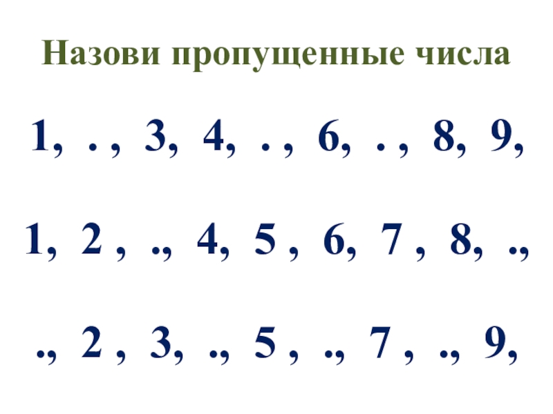 Слайд 4Назови пропущенные числа