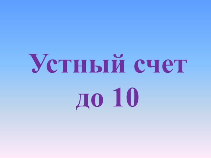 Слайд 1Устный счет до 10