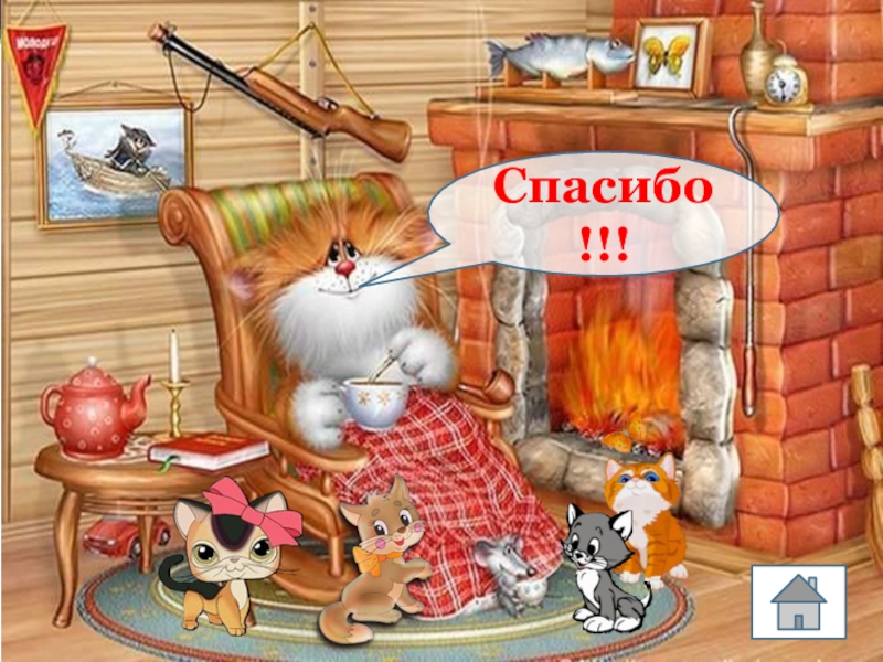Подумай!Коты отличаются тонким слухом.Р. п.Д.п.В. п.Т. п.Молодец!