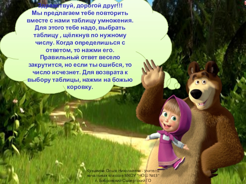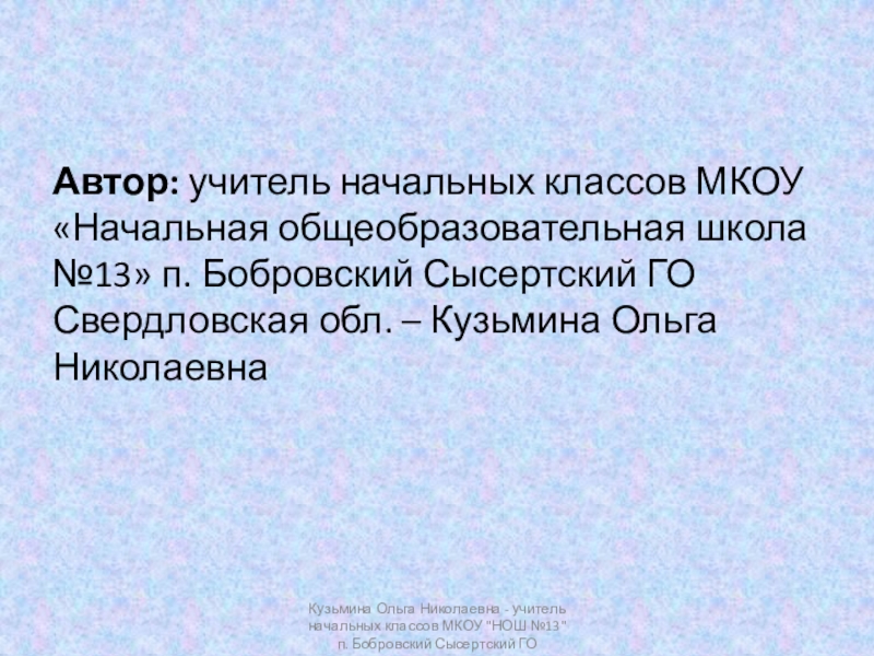 Кузьмина Ольга Николаевна - учитель начальных классов МКОУ "НОШ №13" п. Бобровский Сысертский ГО