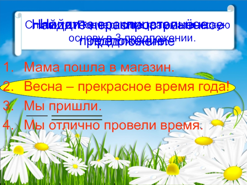 Спишите. Подчеркните грамматическую основу в 3 предложении.