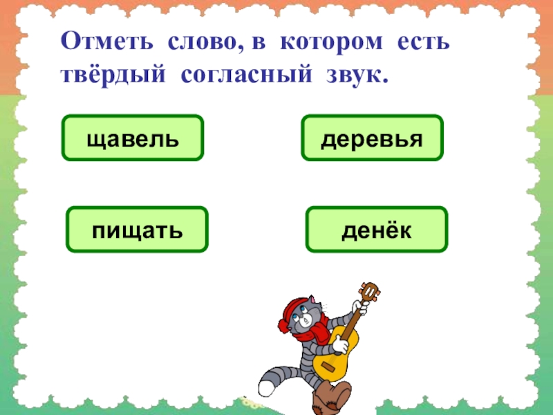 Слайд 4Отметь слово, в котором есть твёрдый согласный звук.