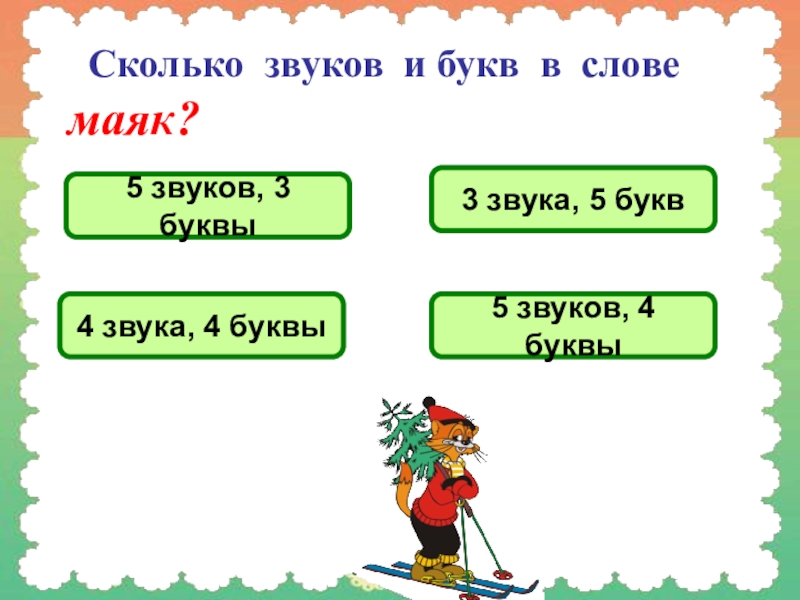 Слайд 6 Сколько звуков и букв в слове маяк?