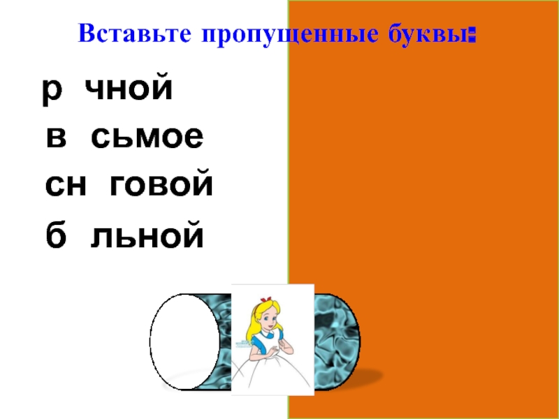 Вставьте пропущенные буквы:речнойвосьмоеснеговойбольной
