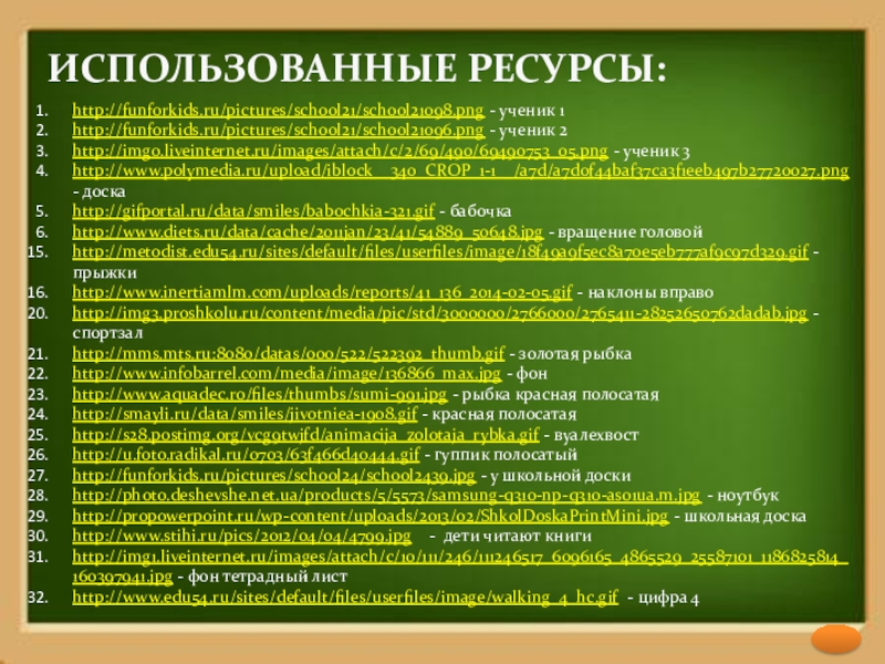 ИСПОЛЬЗОВАННЫЕ РЕСУРСЫ:
