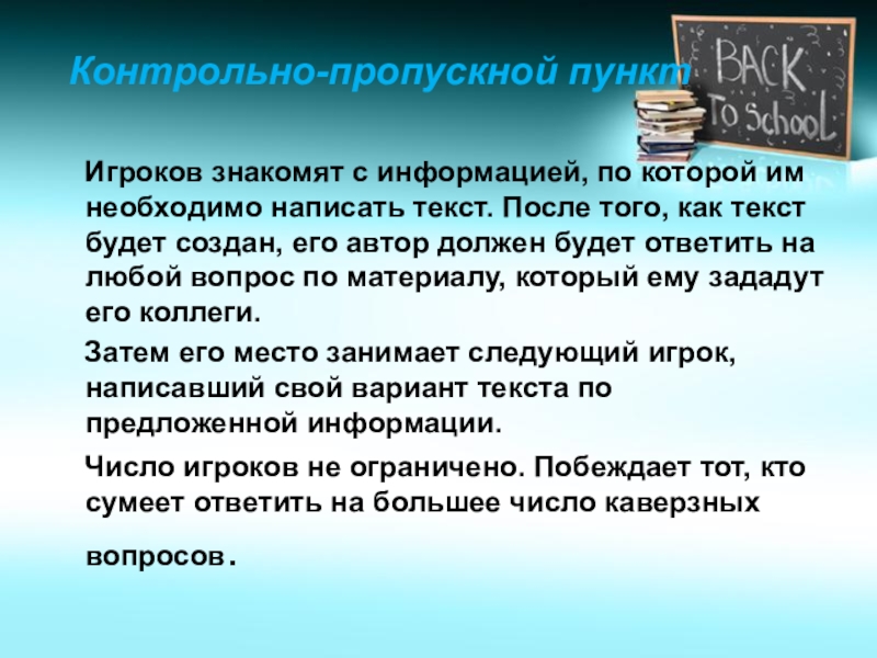 Затем его место занимает следующий игрок, написавший свой вариант текста по предложенной информации.