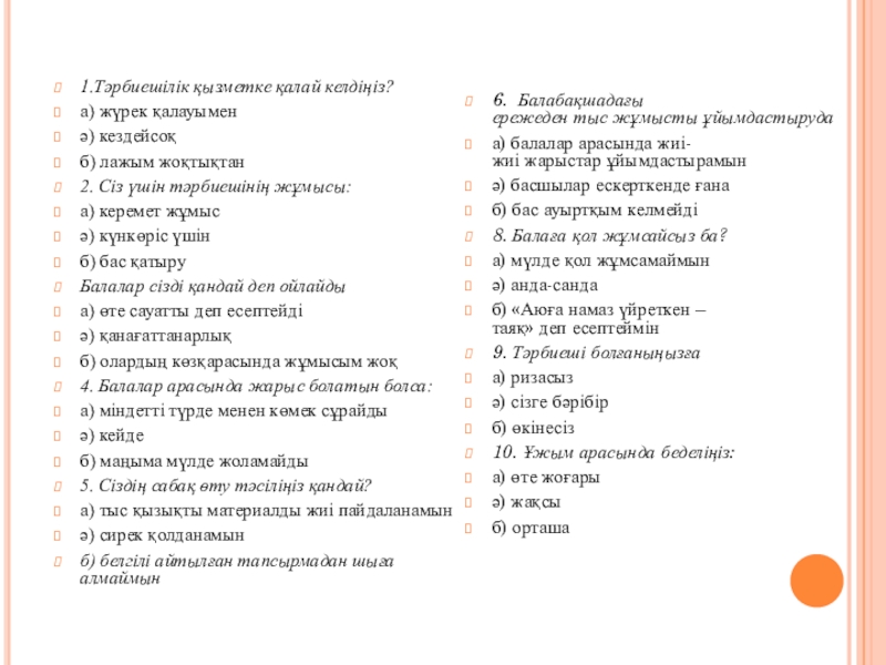 9. Тәрбиеші болғаныңызға