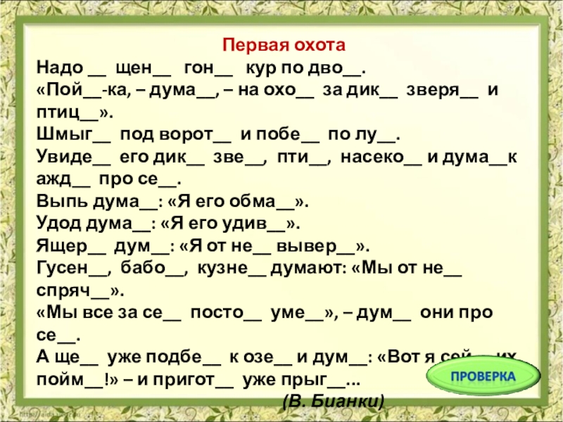 http://nsc.1september.ru/article.php?ID=200800403 В.Сутеев текст, В.Бианки «Первая охота»