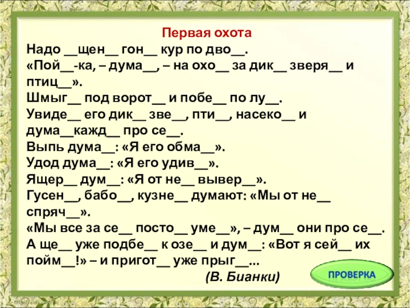 http://nsc.1september.ru/article.php?ID=200800403 В.Сутеев текст, В.Бианки «Первая охота»