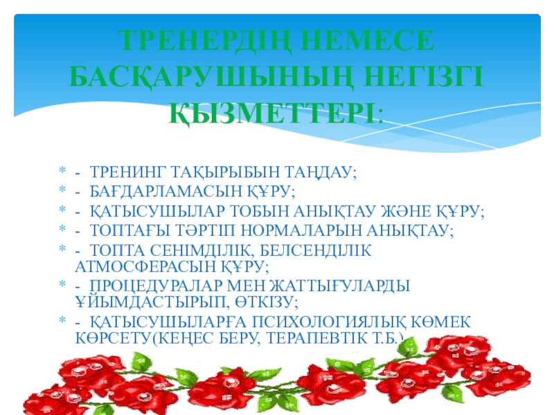 ТРЕНЕРДІҢ НЕМЕСЕ БАСҚАРУШЫНЫҢ НЕГІЗГІ ҚЫЗМЕТТЕРІ: