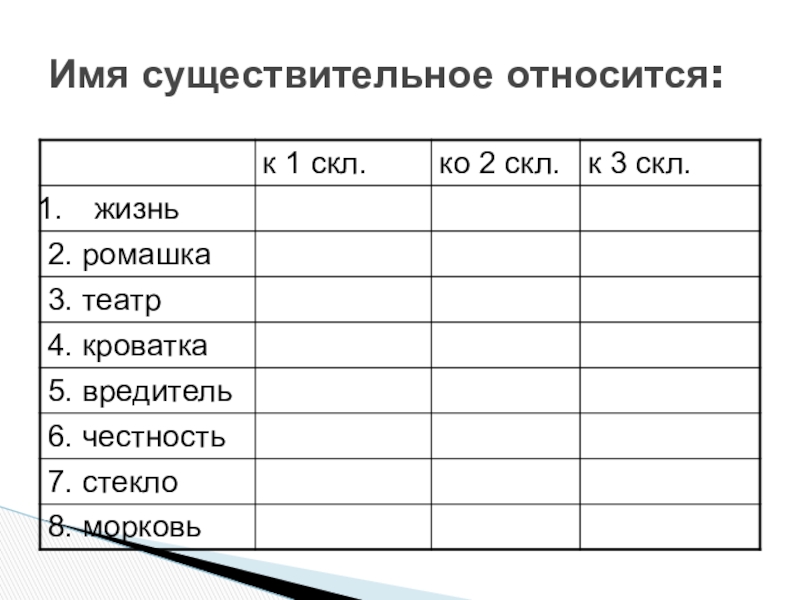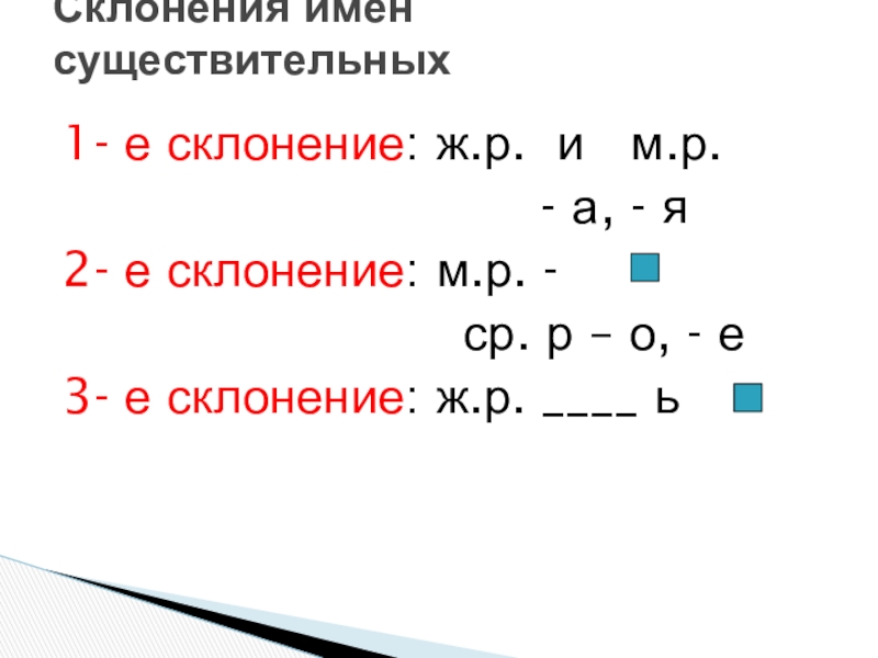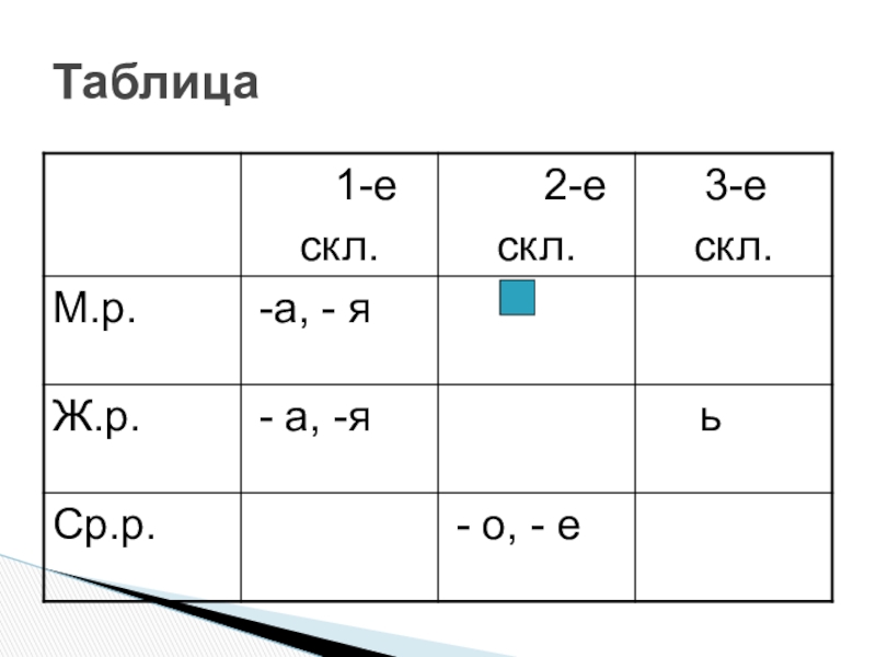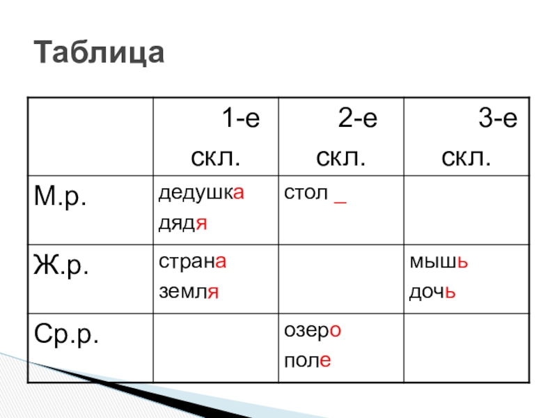 Слайд 1Три склонения имён существительных