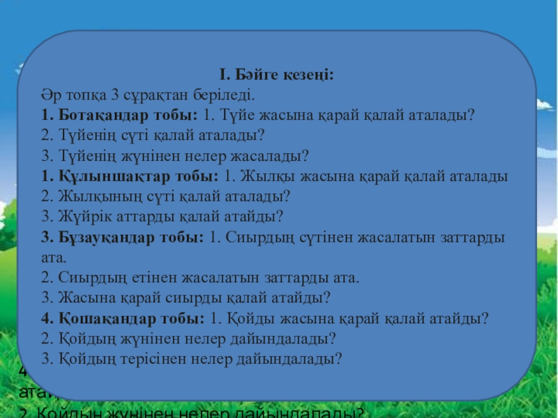 3. Бұзауқандар тобы: 1. Сиырдың сүтінен жасалатын заттарды ата.