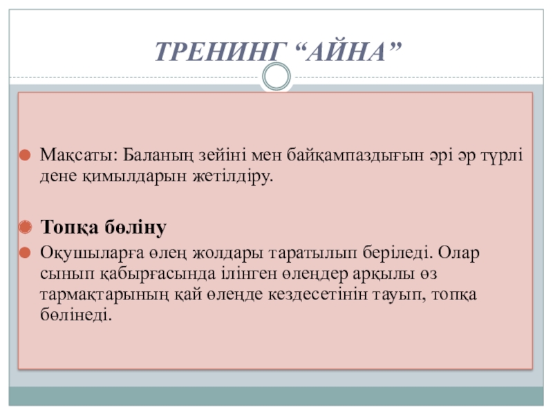 Оқушыларға өлең жолдары таратылып беріледі. Олар сынып қабырғасында ілінген өлеңдер арқылы өз тармақтарының қай өлеңде кездесетінін тауып, топқа бөлінеді.