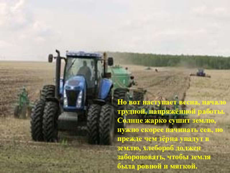 Слайд 6Но вот наступает весна, начало трудной, напряжённой работы. Солнце жарко сушит