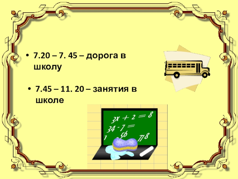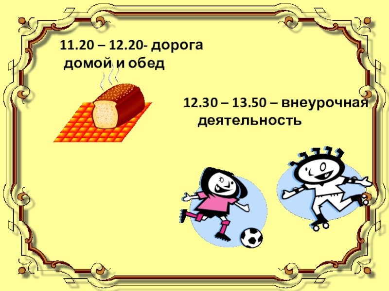 Слайд 8 11.20 – 12.20- дорога домой и обед
