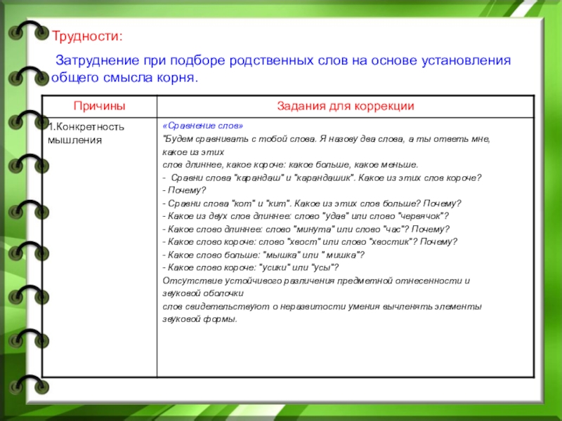 Трудности: Затруднение при подборе родственных слов на основе установления общего смысла корня.