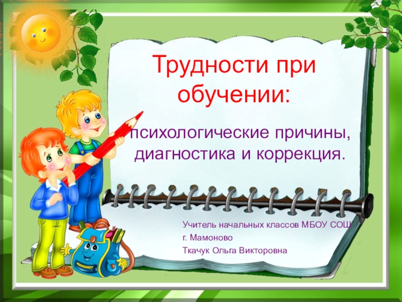 Трудности при обучении:психологические причины, диагностика и коррекция.Учитель начальных классов МБОУ СОШ г. МамоновоТкачук Ольга Викторовна