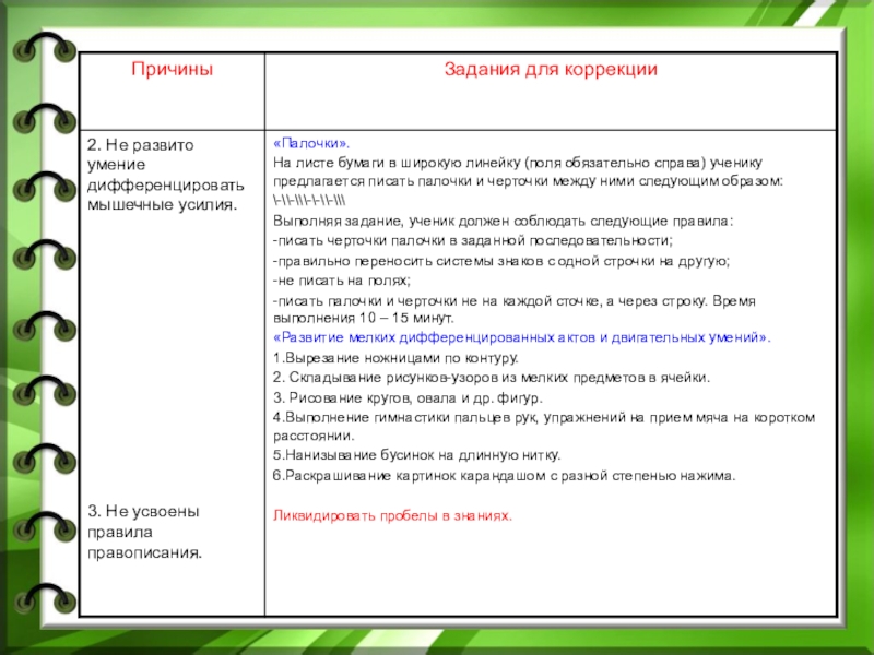 Неряшливое письмо, грязь в тетради, неумение правильно «надавливать» на ручку
