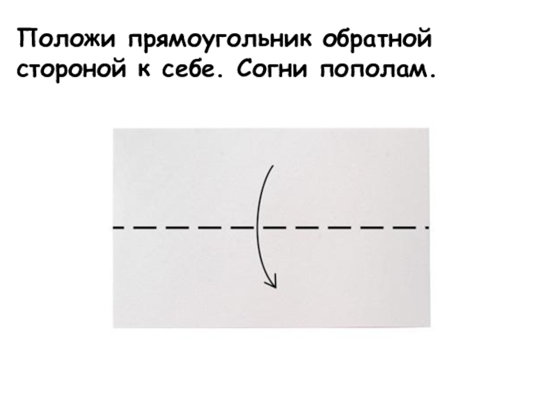 Слайд 3Положи прямоугольник обратной стороной к себе. Согни пополам.