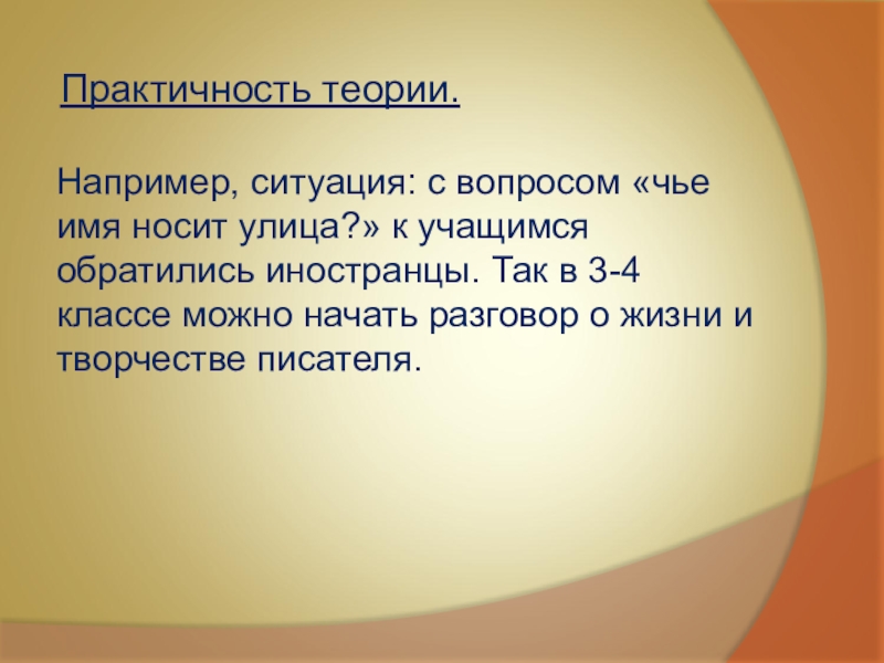 Например, ситуация: с вопросом «чье имя носит улица?» к учащимся