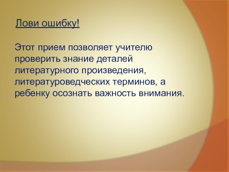 Этот прием позволяет учителю проверить знание деталей литературного произведения, литературоведческих